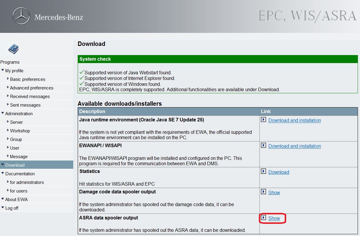Version of Autoline 8.3 and above provide an out of the box support of EPC respectively WIS/ASRA via EWANAPI. The tradeoff is that it currently expects some files to be located in the user profile directory. If those files are not present Autoline 8.3 will not enable the EPC or WIS/ASRA buttons. The best way to install EWANAPI on user's PCs is by use of the following settings - which have to be set on the EWA server inside the file [EWA-HOME]\clientapps\ewanapi\ewanapi.ini:
